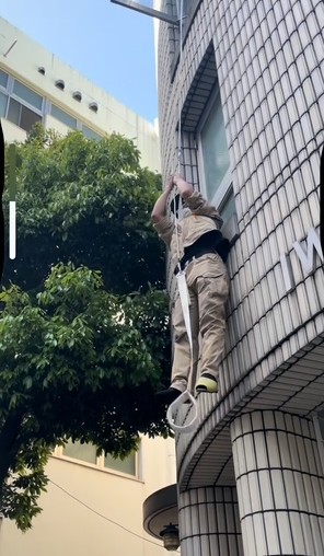 その後、避難器具を使った非難訓練として業者さんに器具の組み立て方、避難の仕方を教わりました。